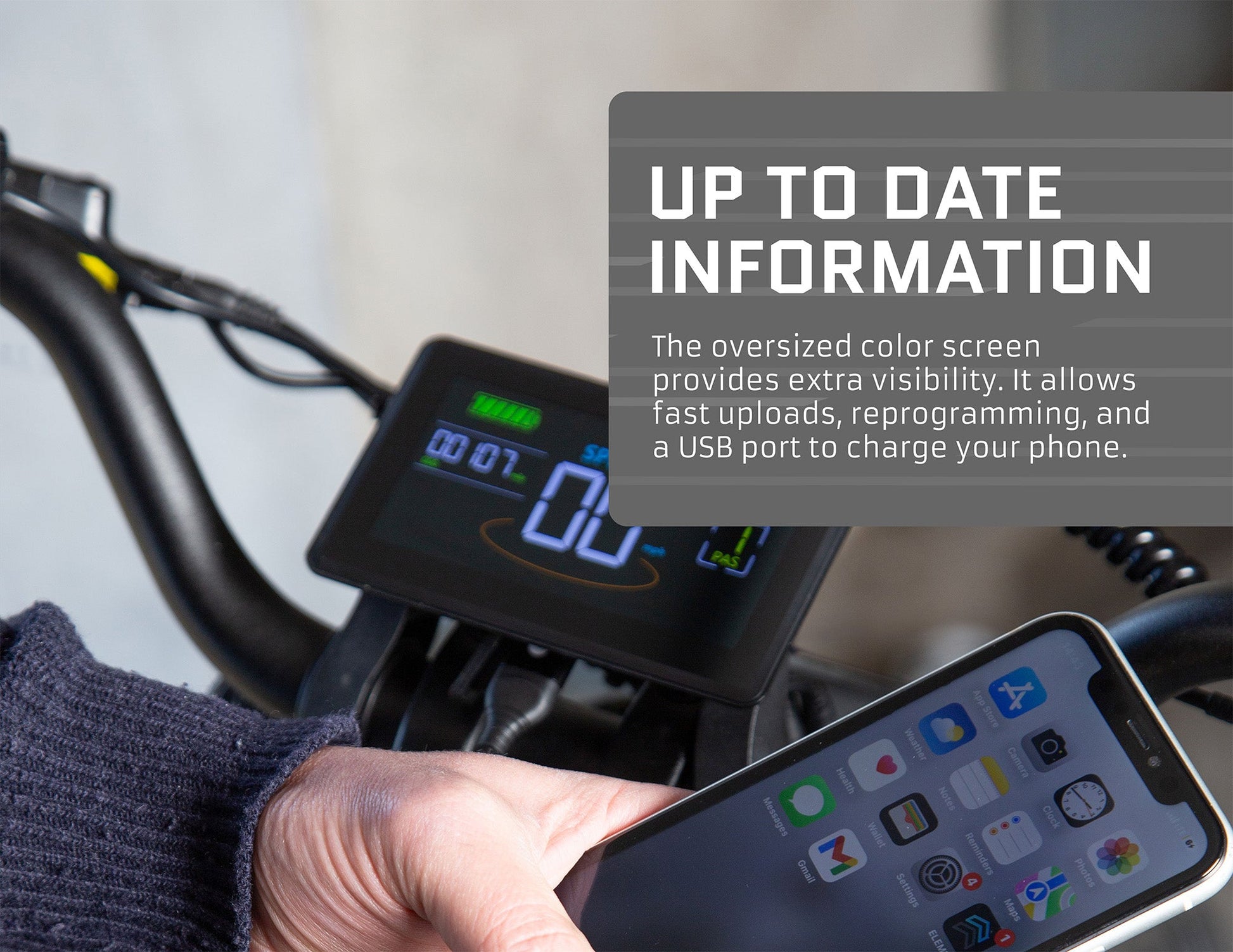 UP TO DATE INFORMATION. The oversized color screen provides extra visibility. It allows fast uploads, reprogramming, and a USB port to charge your phone.